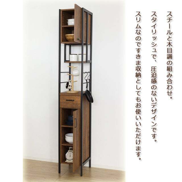 スチールと木目調の組み合わせ。スタイリッシュなデザインの食器棚です。